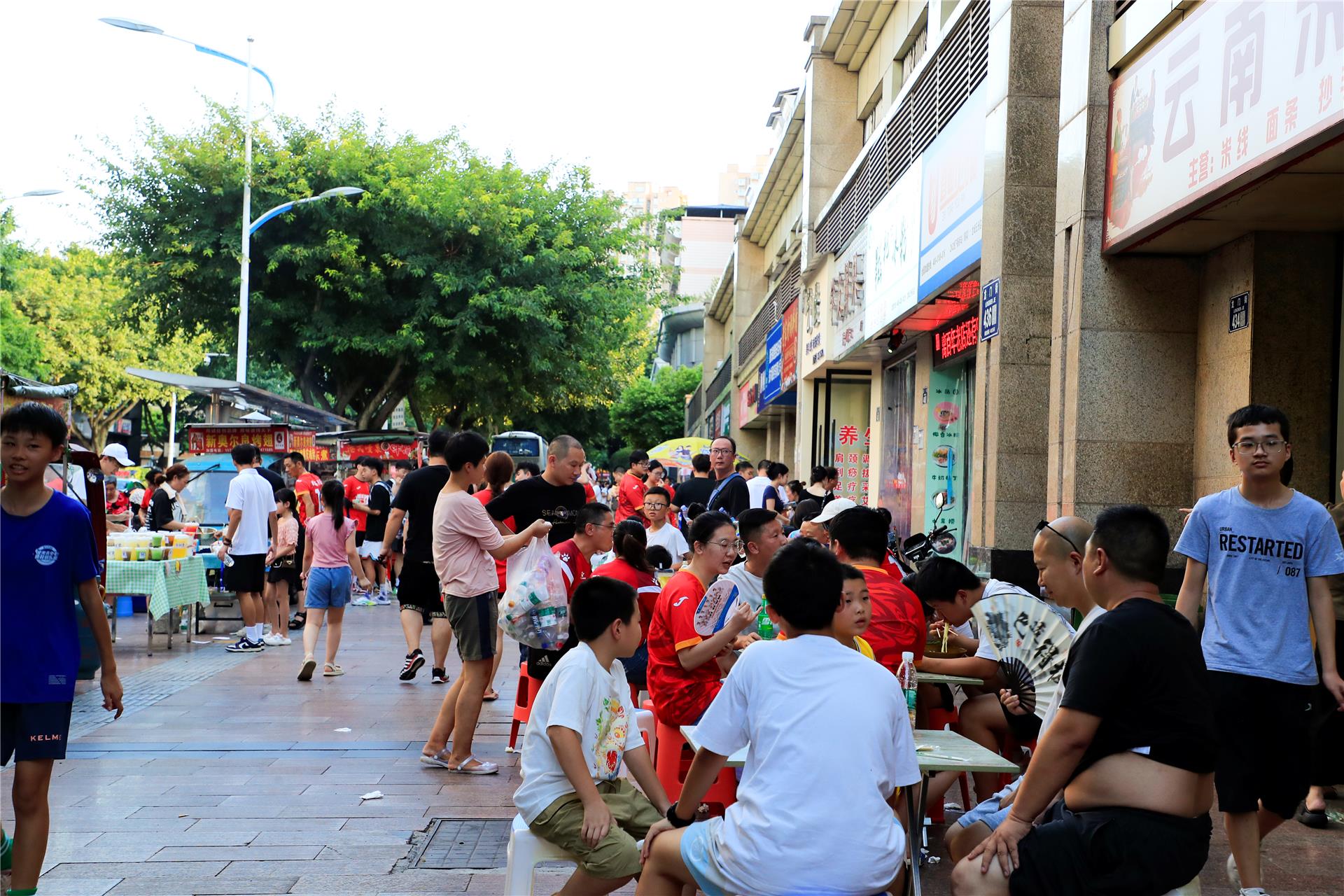 8月25日,重慶銅梁龍主場對戰延邊龍鼎。8000多位球迷來到現場,將汗水揮灑在看臺上。當天,銅梁龍體育場周邊的小吃店和小吃攤迎來了客流高
